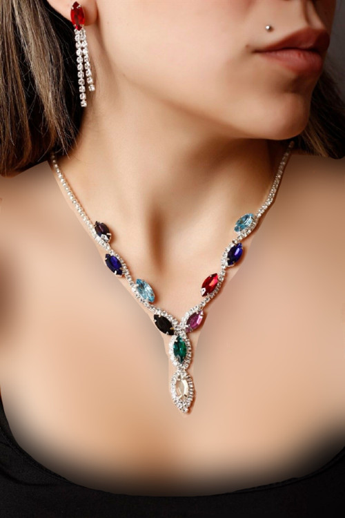 ست استیل طرح جواهری نگین کریستال رنگ ثابت