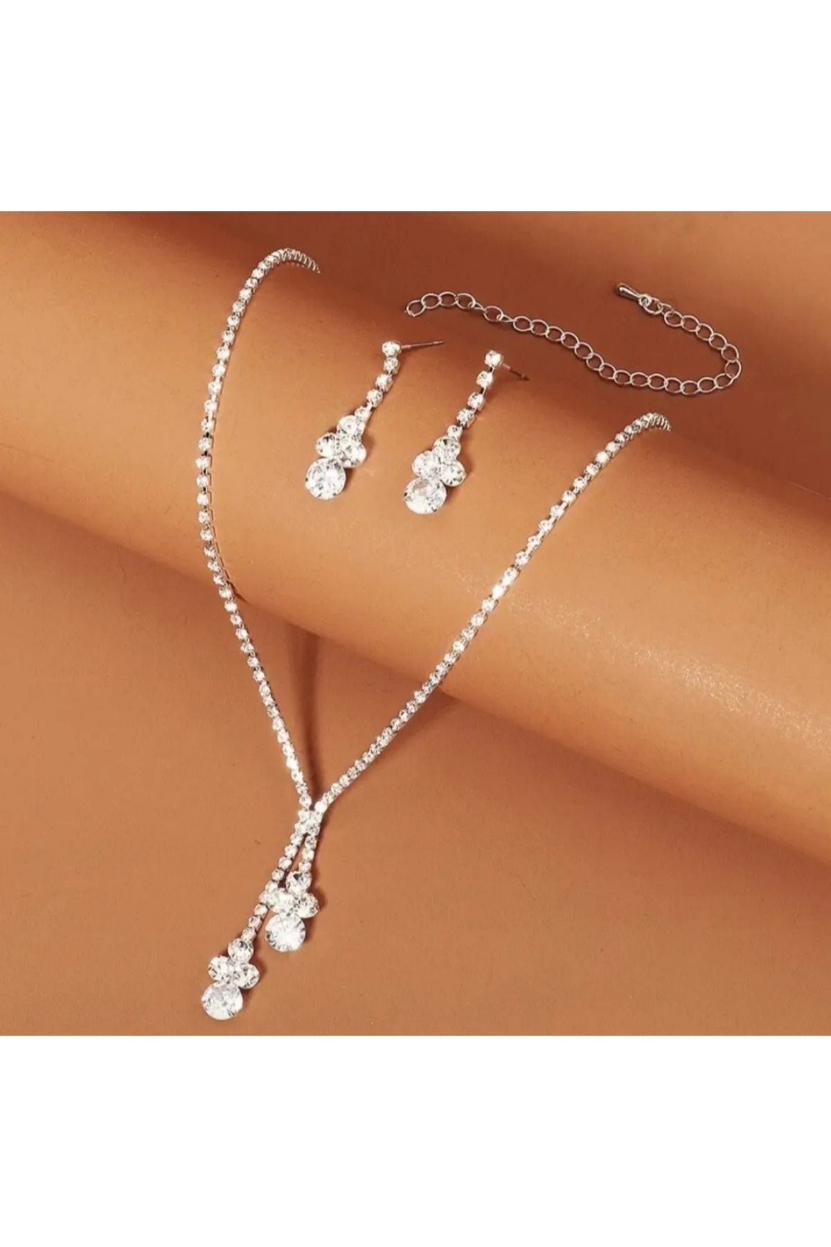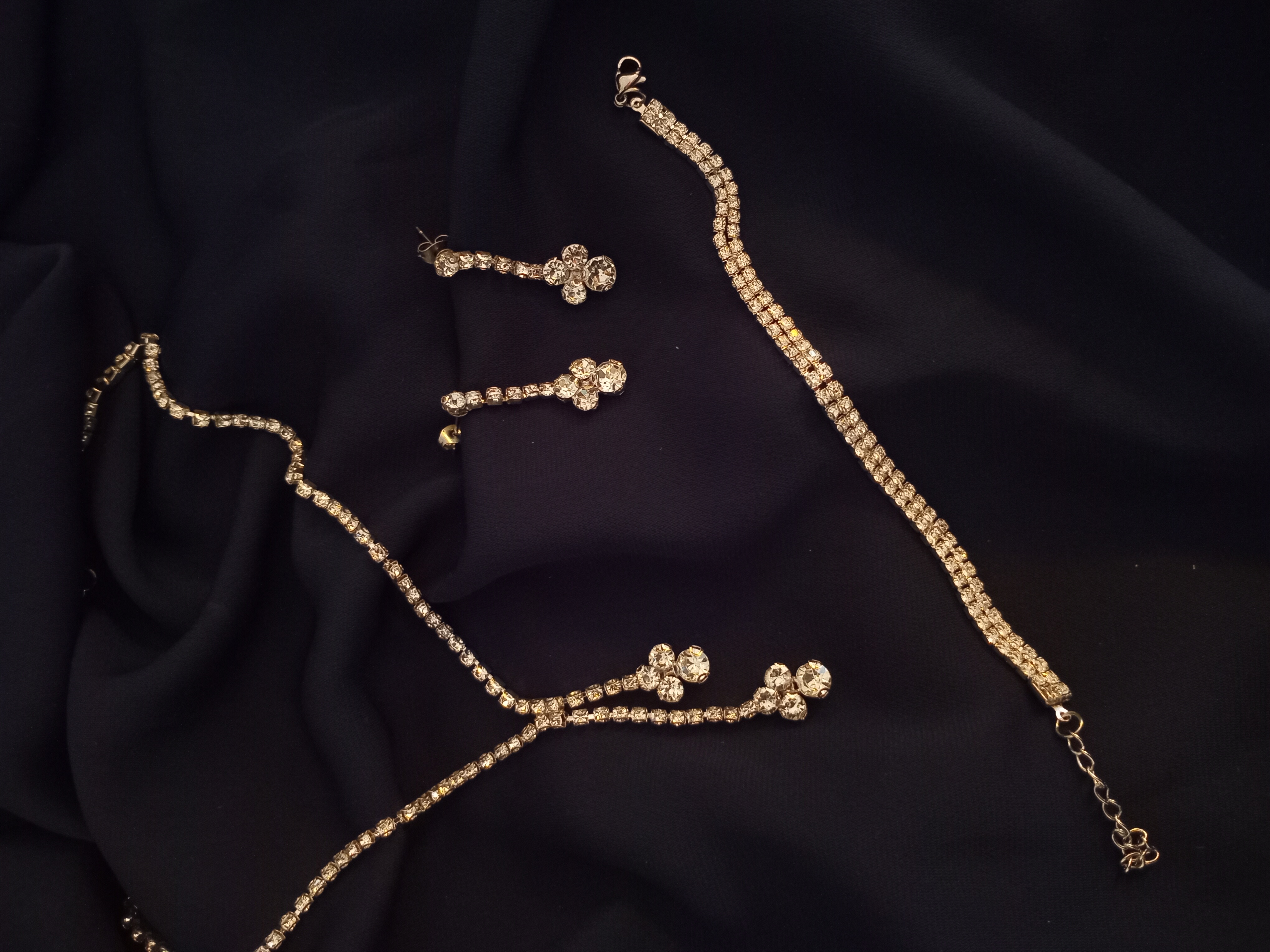 ست گردنبند و گوشواره و دستبند استیل طرح جواهری