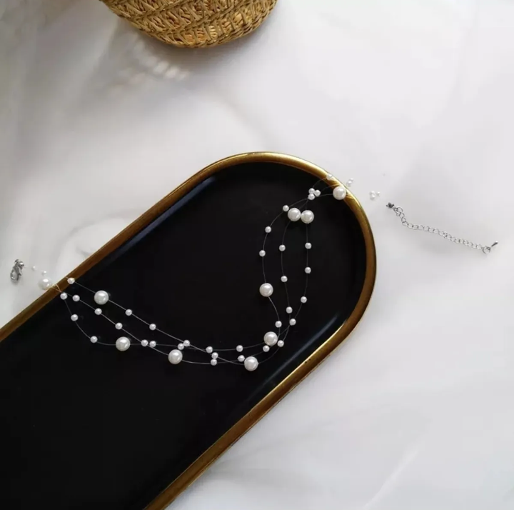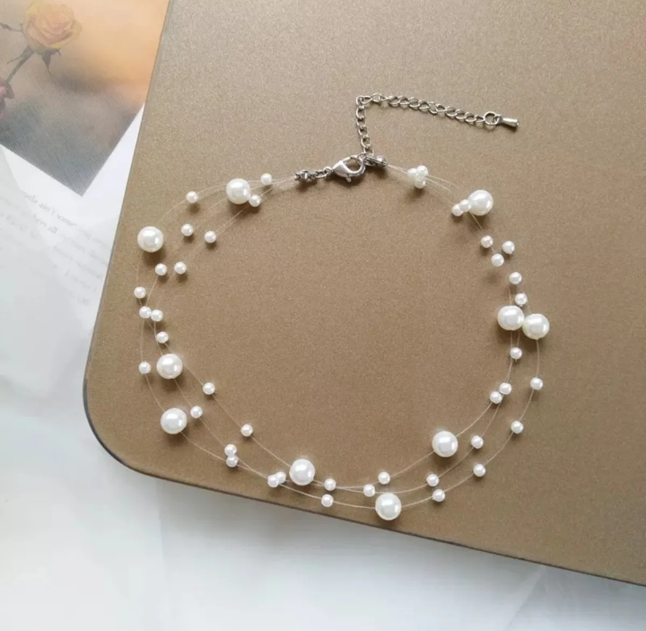 گردنبند سه لاین مرواریدی با بند نامرئی مدل ۲