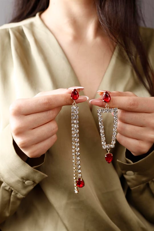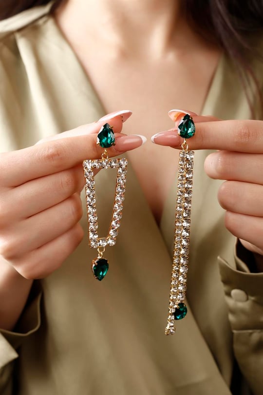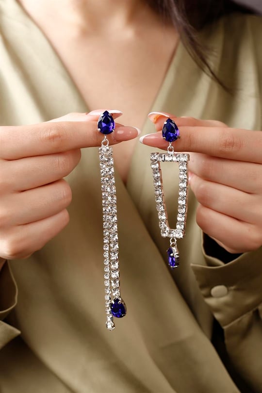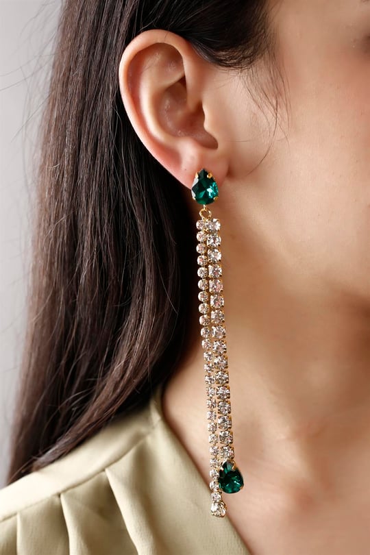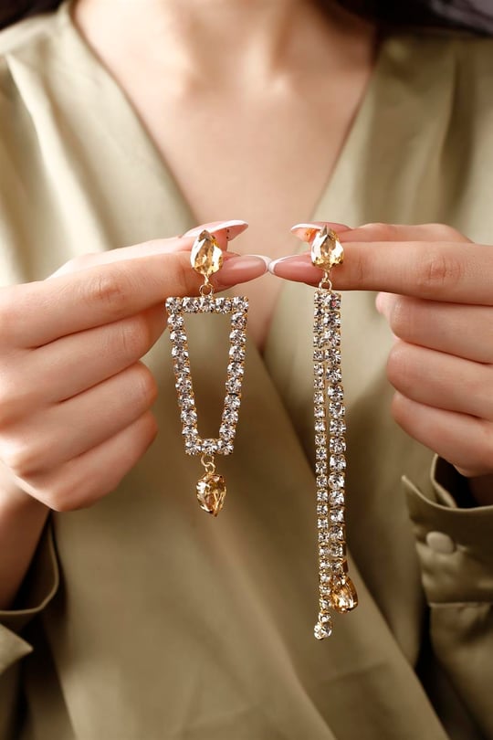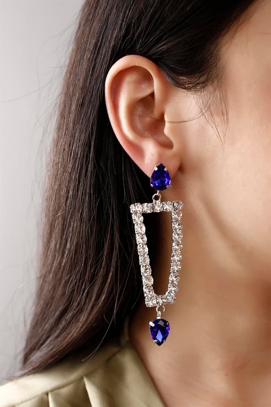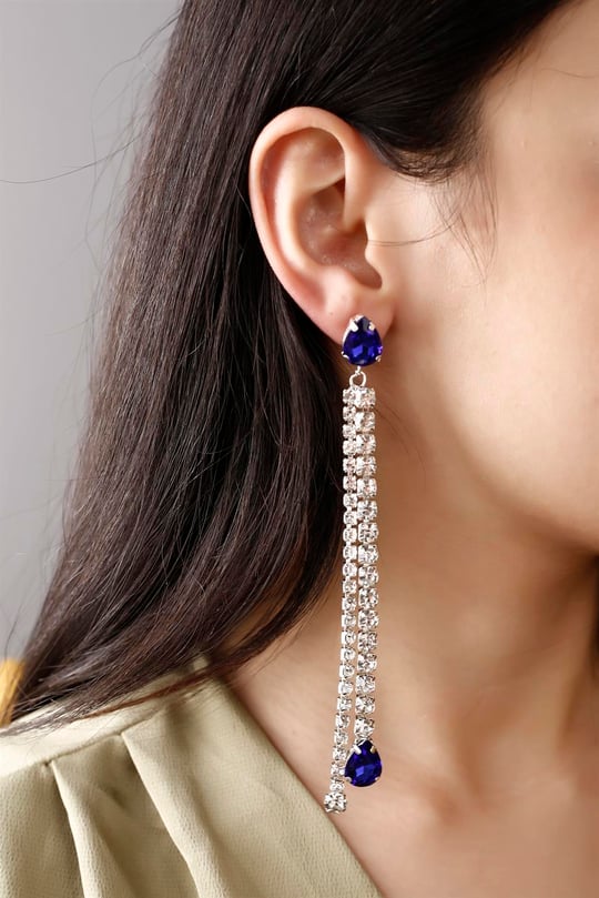 گوشواره استیل رنگ ثابت طرح جواهری میخی با آویز نگین اشکی